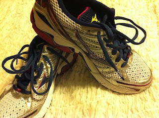 So here are the new shoes - Mizuno Inspire 7 but I'd like to give them a different name... let's call them Older Sister to Wild Thing. The aren't quite as fun looking - but they have a great personality.